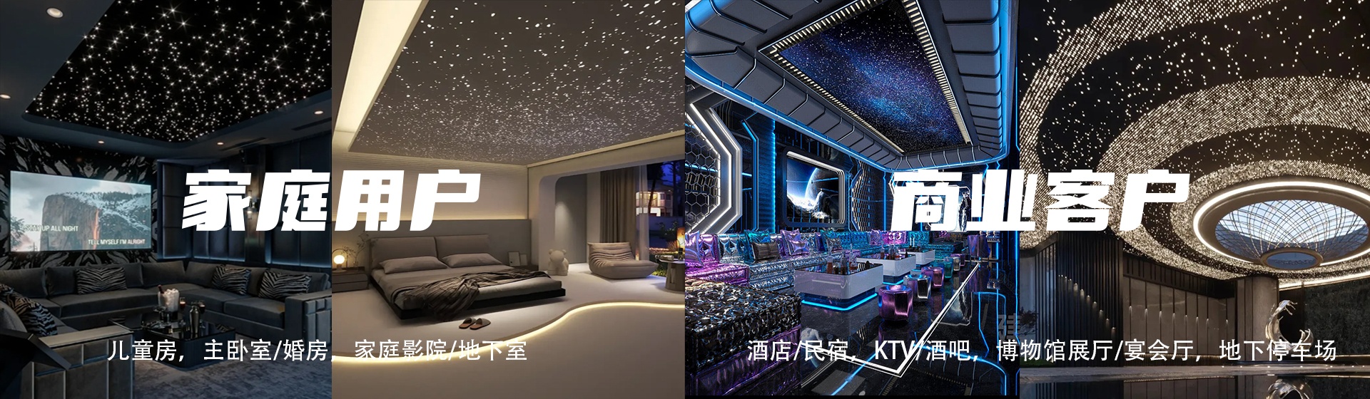 我们以“让星空触手可及”为核心理念,为家庭、商业空间及公共领域提供定制化的智能光影系统与装饰方案。通过LED技术、光纤投影与AI智能控制,模拟真实星空、极光等自然景观,支持动态场景切换与声光联动。为别墅、酒店、会所等提供个性化星空顶设计,结合建筑结构与用户需求,创造独一无二的空间美学。覆盖主题餐厅、影院、展览馆等领域,以光影技术增强场景氛围,提升品牌吸引力。